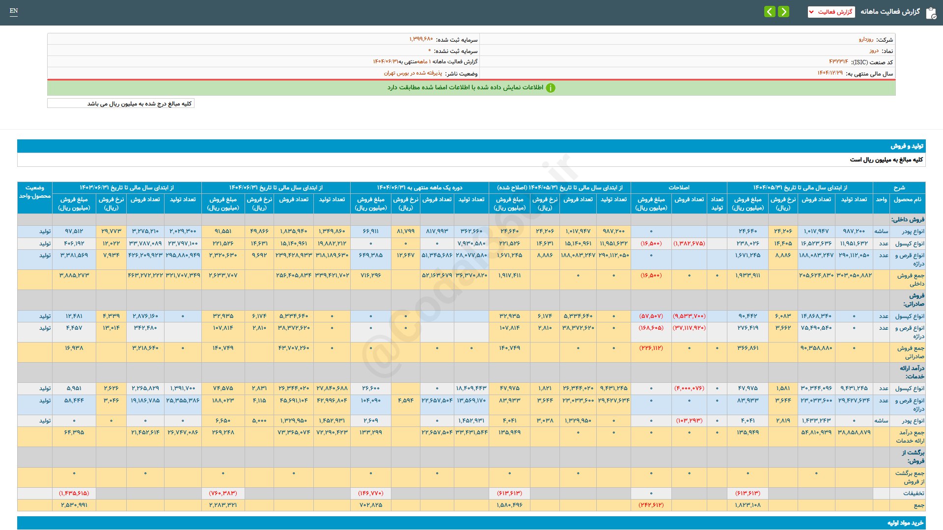 #دروز #گزارش_فعالیت_ماهانه #دوره_1_ماهه منتهی به 1404/02/31 شرکت #روزدارو ▪️ ...