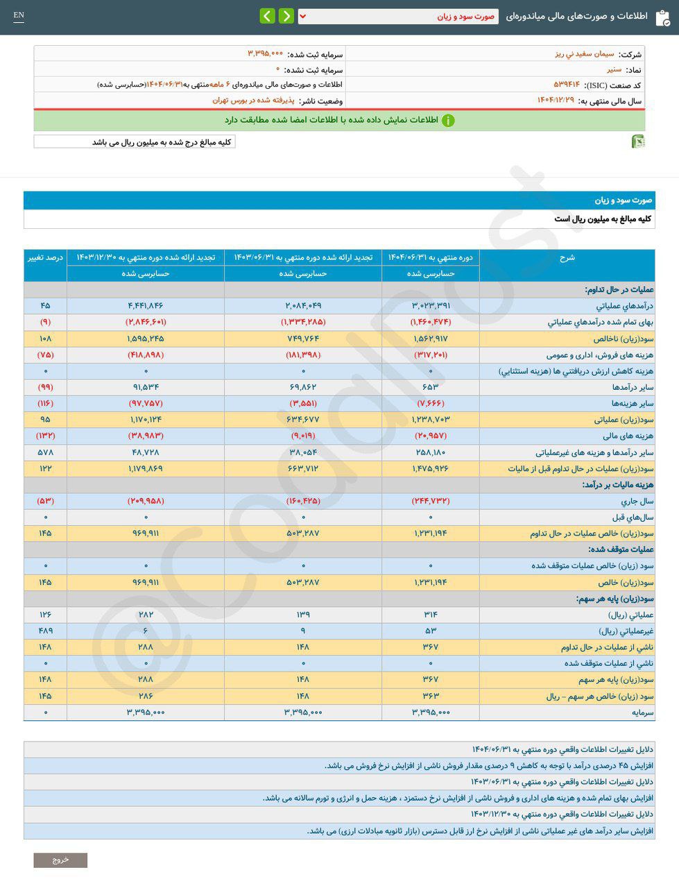 ▪️نماد سنیر بیشترین رشد درآمد ماهانه را...