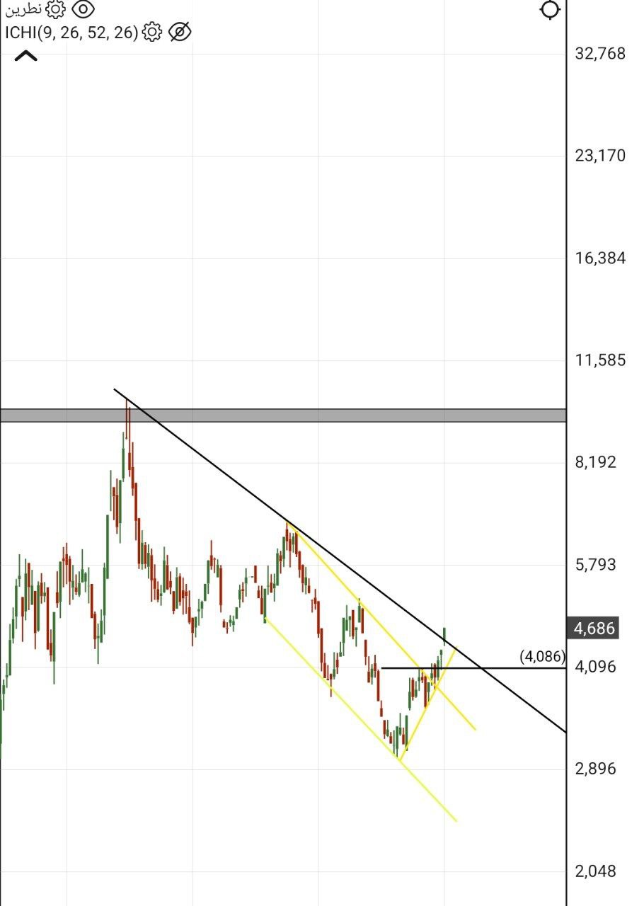 با سلام شکست خط روند نزولی بلند مدت همچنین مقاومت استاتیک و پولبک در صورت دیدن الگوی کندلی اقدام به خرید کنید سبدتون همیشه سبز💰💰🌹