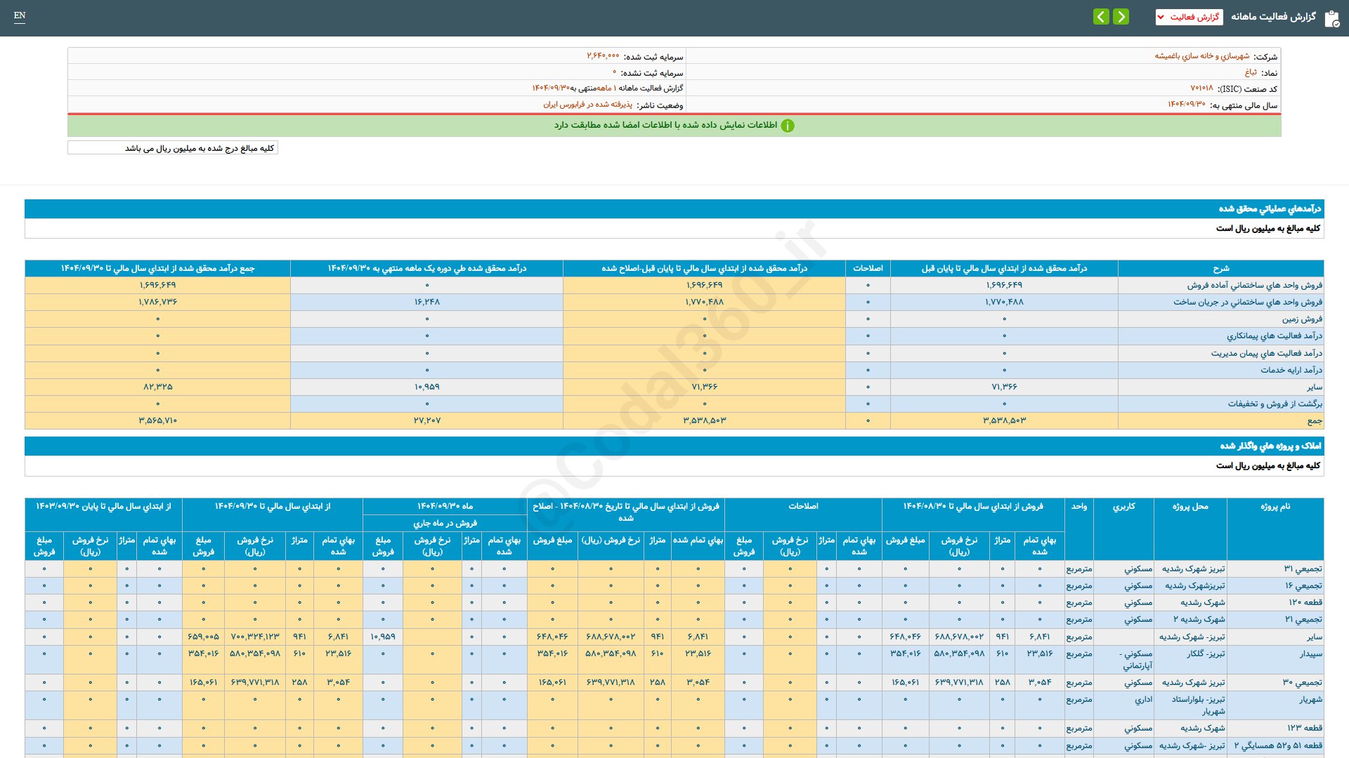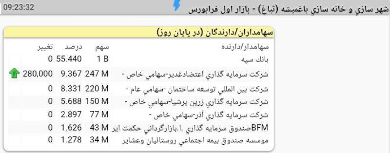 تحلیل های ثباغ (شهر سازی و خانه سازی باغمیشه / بازار اول فرابورس)