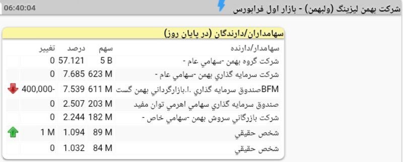 تحلیل های ولبهمن (شرکت بهمن لیزینگ / بازار اول فرابورس)