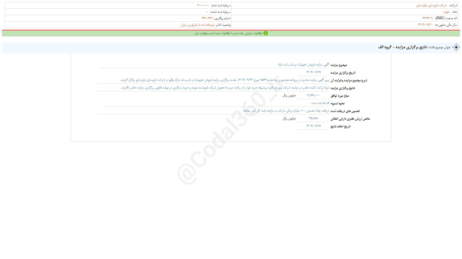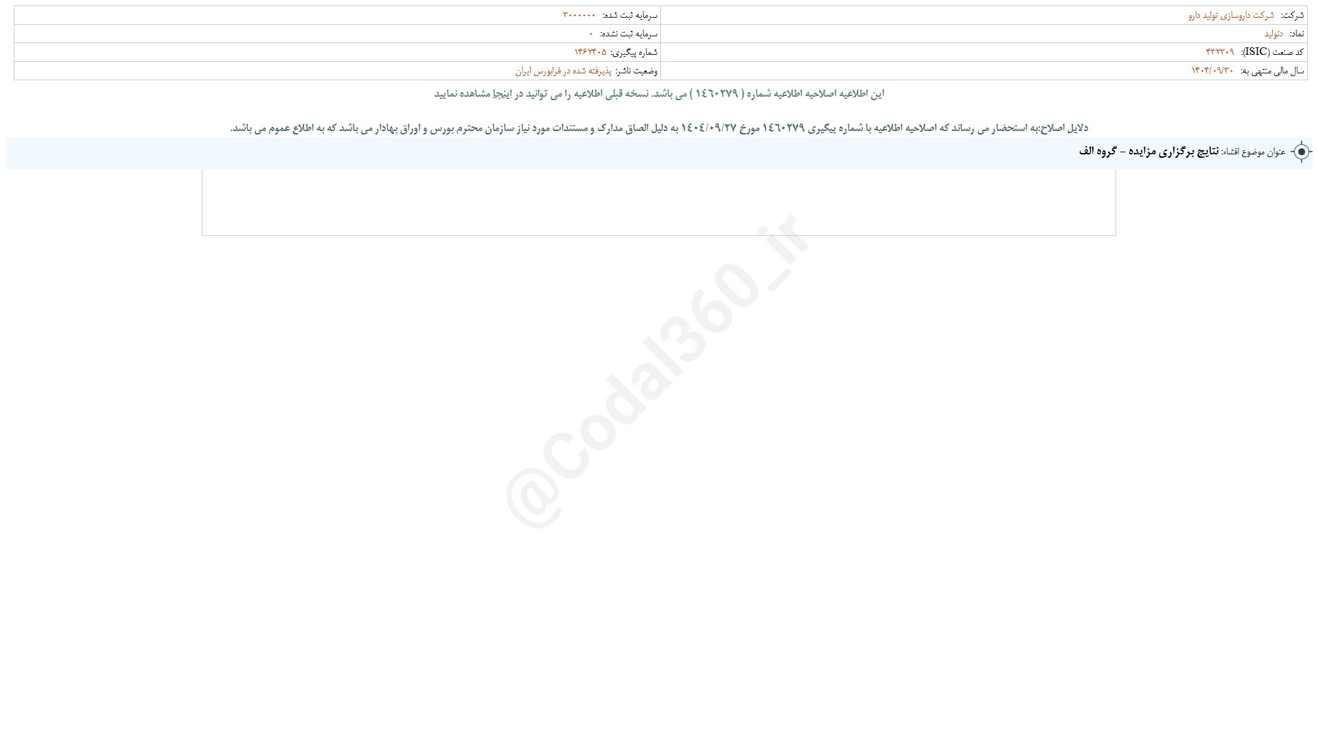 تحلیل های دتولید (داروسازی تولید دارو / بازار اول فرابورس)