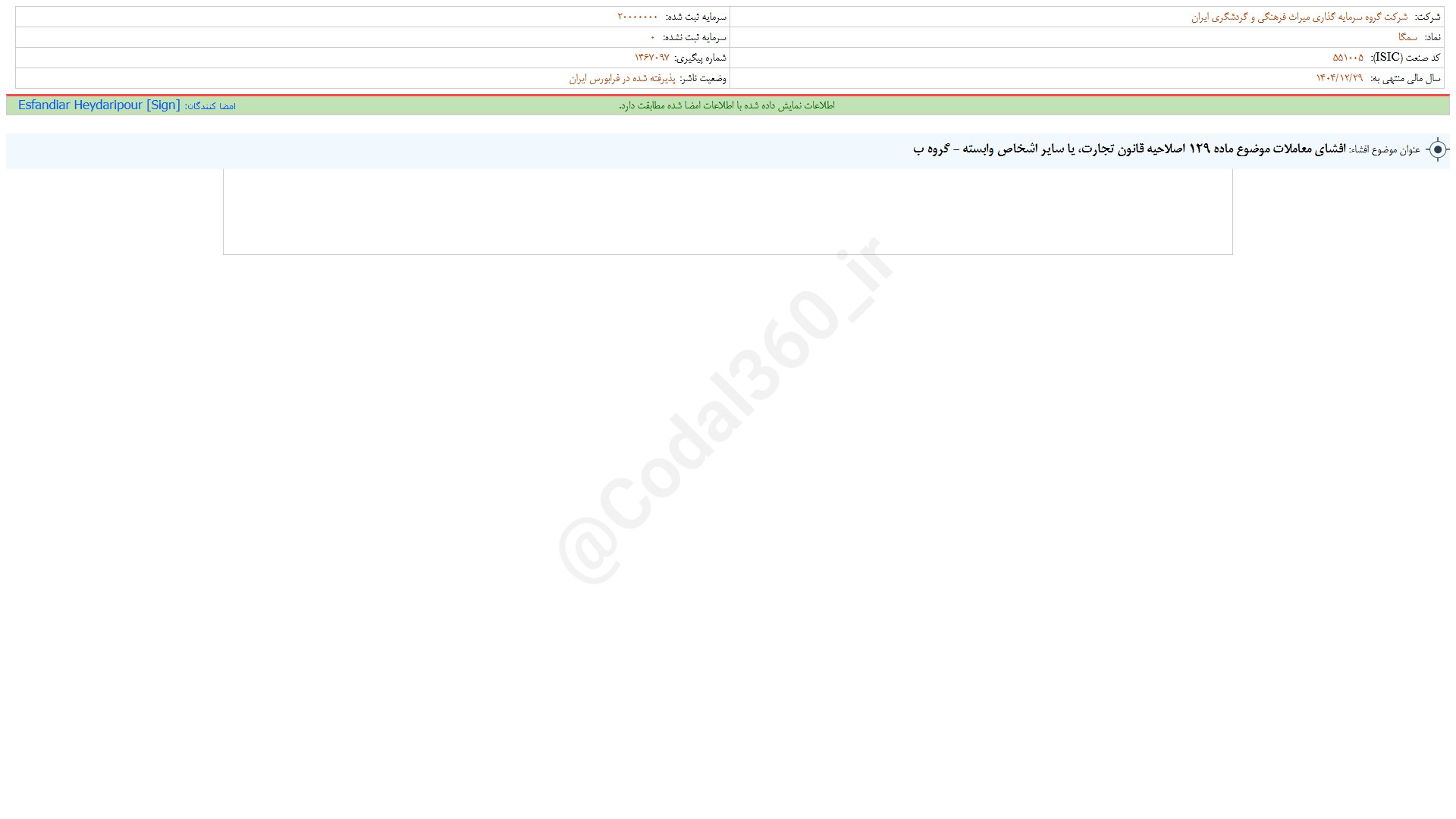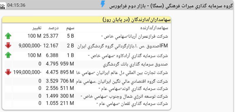 تحلیل های سمگا (گروه سرمایه گذاری میراث فرهنگی / بازار اول فرابورس)