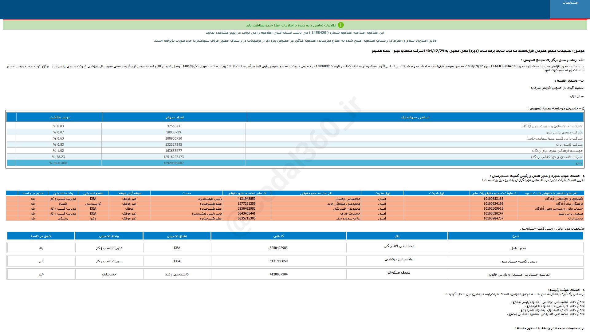 تحلیل های غصینو (صنعتی مینو / بازار دوم فرابورس)