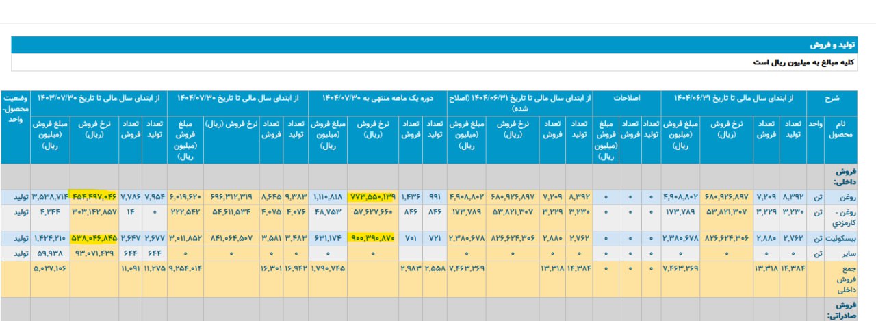 غپونه سهمی که دو سوم سبد تولیدش روغن خوراکی و یک سوم دیگر بیسکوییت می باشد...