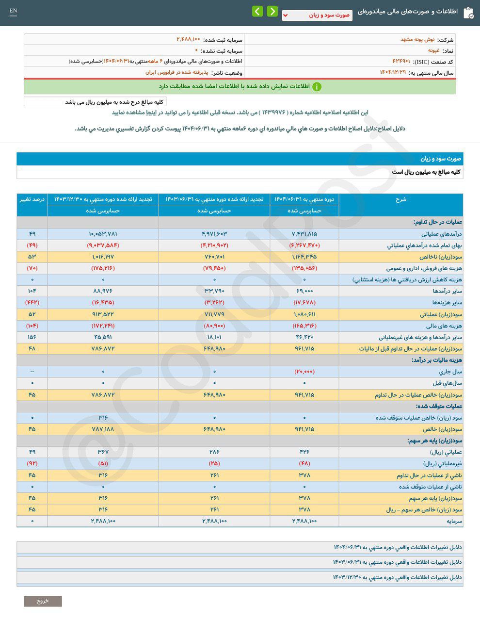 تحلیل های غپونه (نوش پونه مشهد / بازار دوم فرابورس)