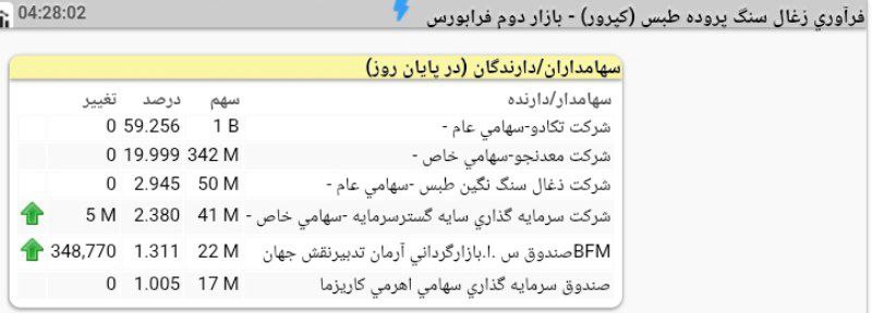 تحلیل های کپرور (فرآوری زغال سنگ پروده طبس / بازار دوم فرابورس)