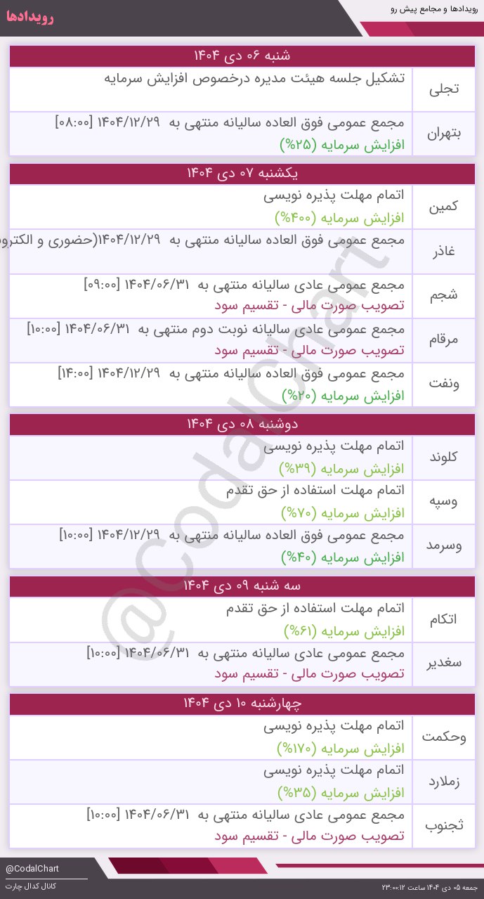 🔶رویدادهای پیش رو در ۷ روز آینده: