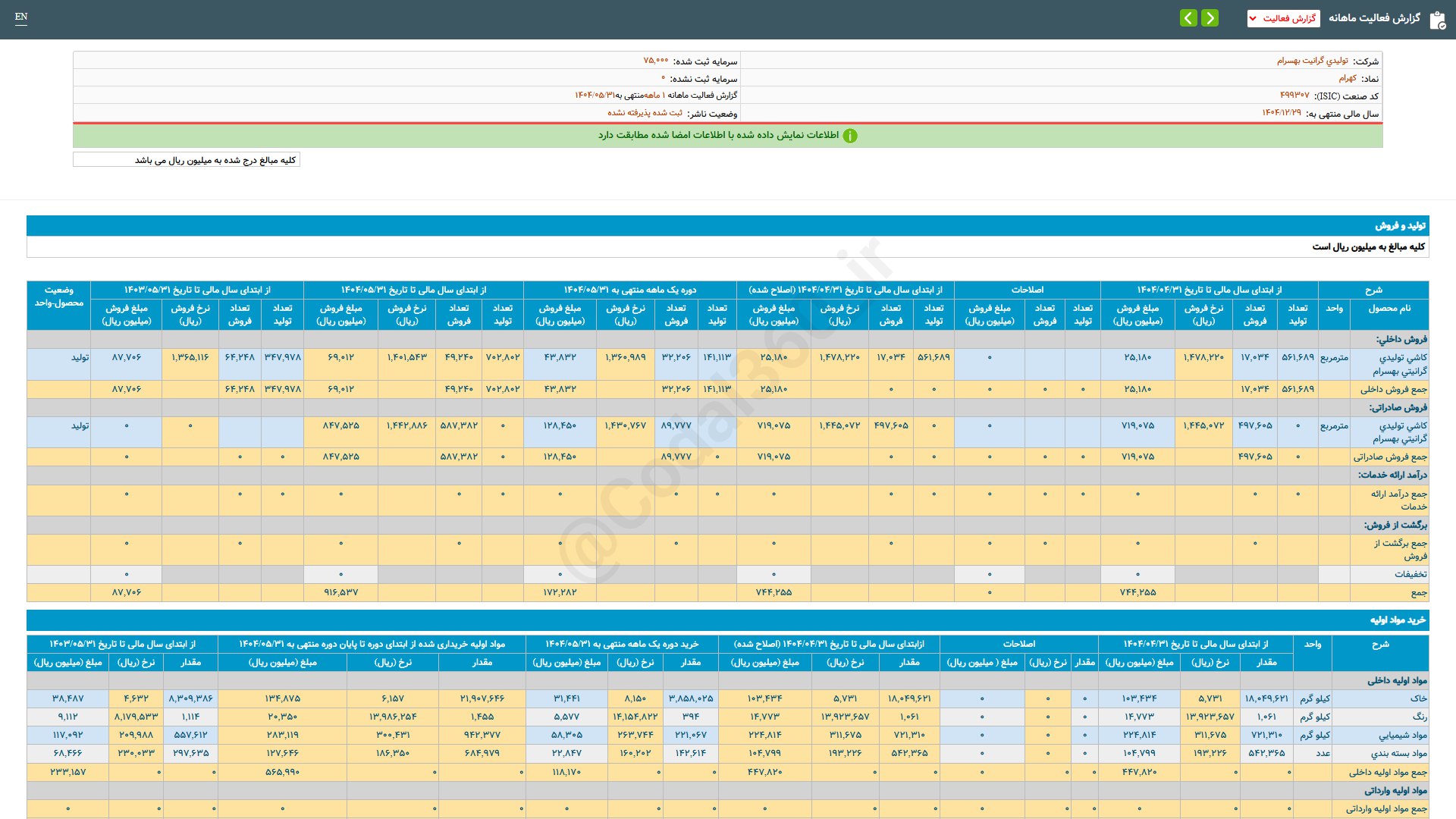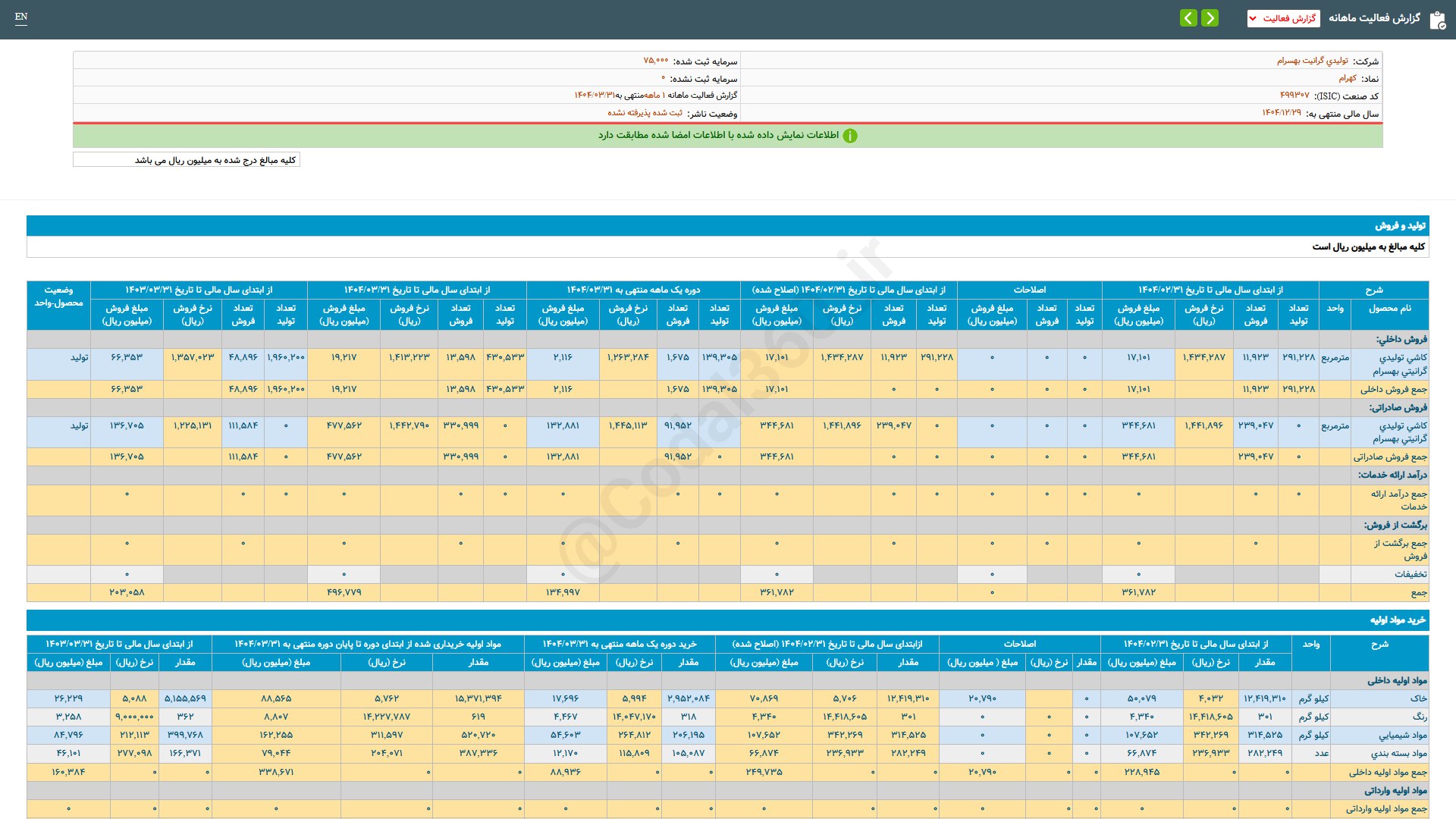 #کهرام #صورتهای_مالی سال مالی منتهی به 1403/12/30 (حسابرسی نشده) شرکت #تولیدی...