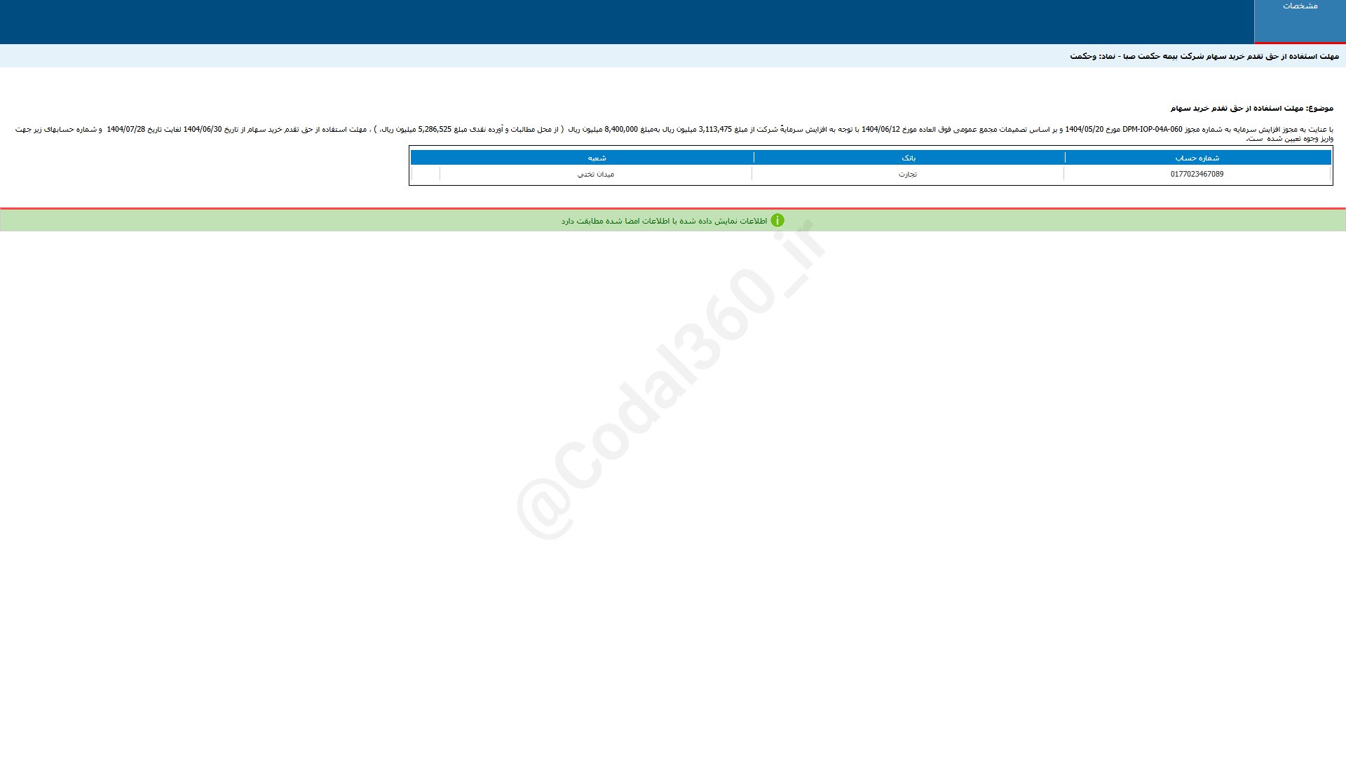تحلیل های (بیمه حکمت صبا / بازار پایه زرد فرابورس)