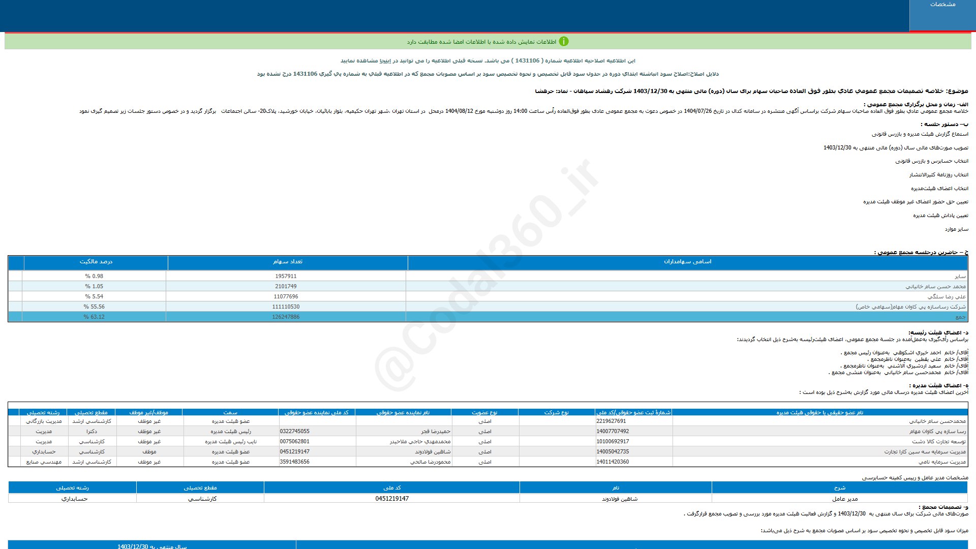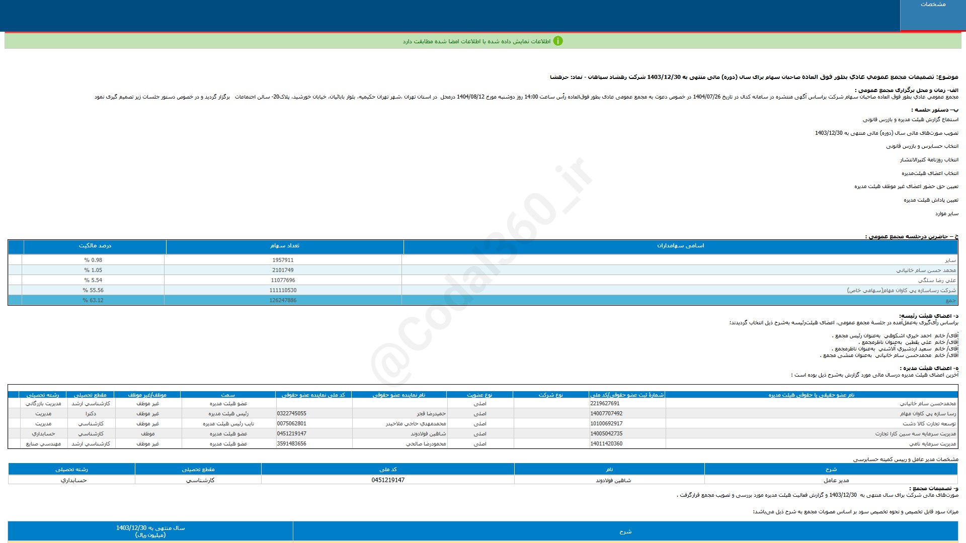 معرفی /#تغییر_در_ترکیب اعضای هییت مدیره/مدیر عامل شرکت #رهشا...