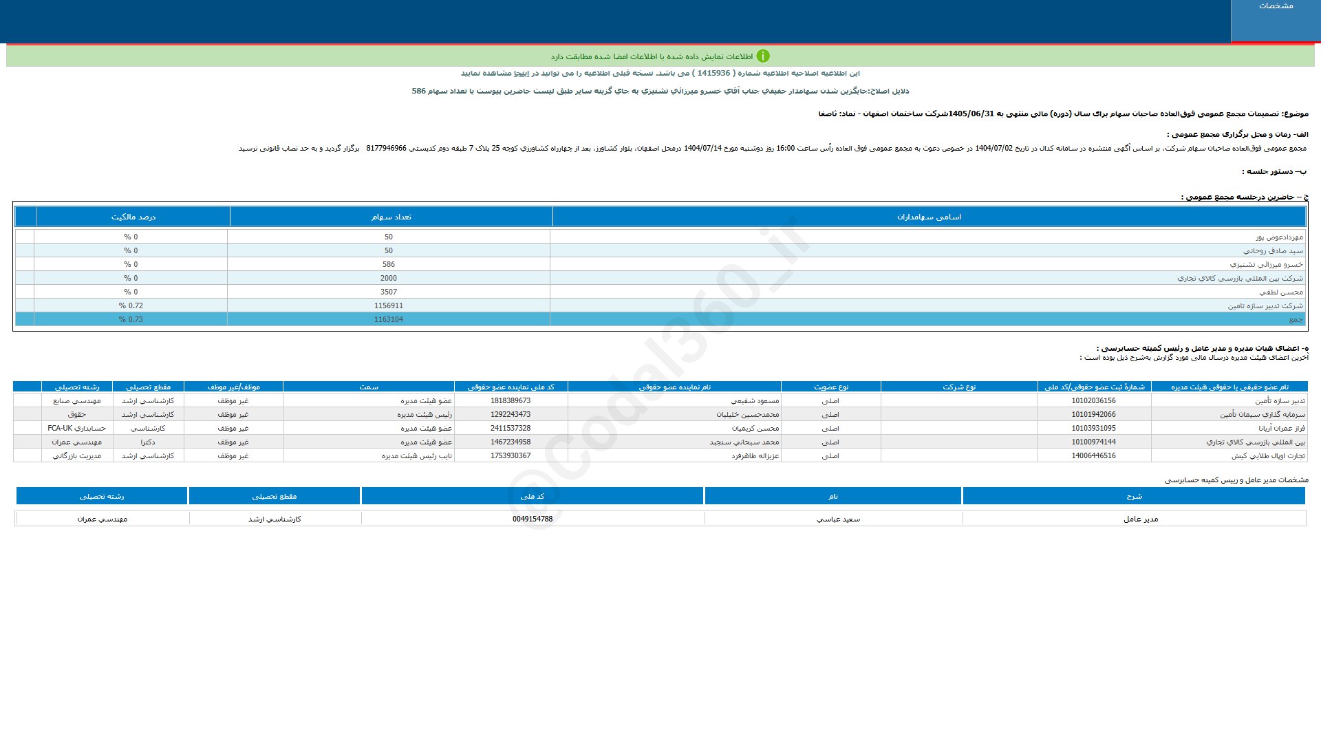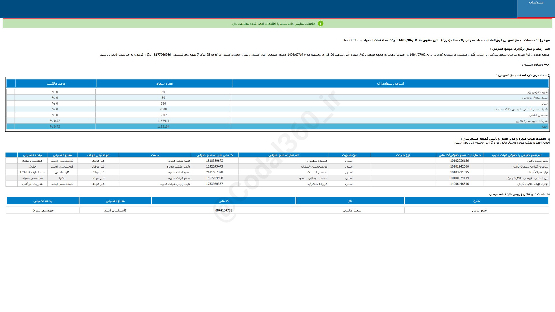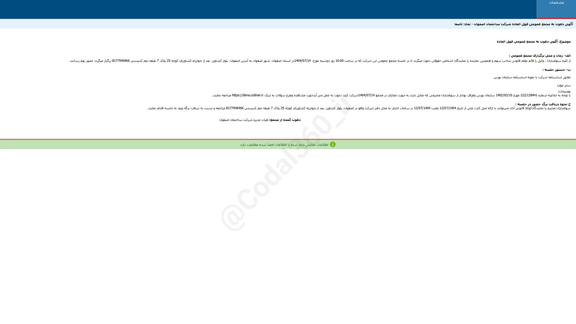 #ثاصفا معرفی /#تغییر_در_ترکیب اعضای هییت مدیره/مدیر عامل شرکت #ساختمان_اصفهان ...