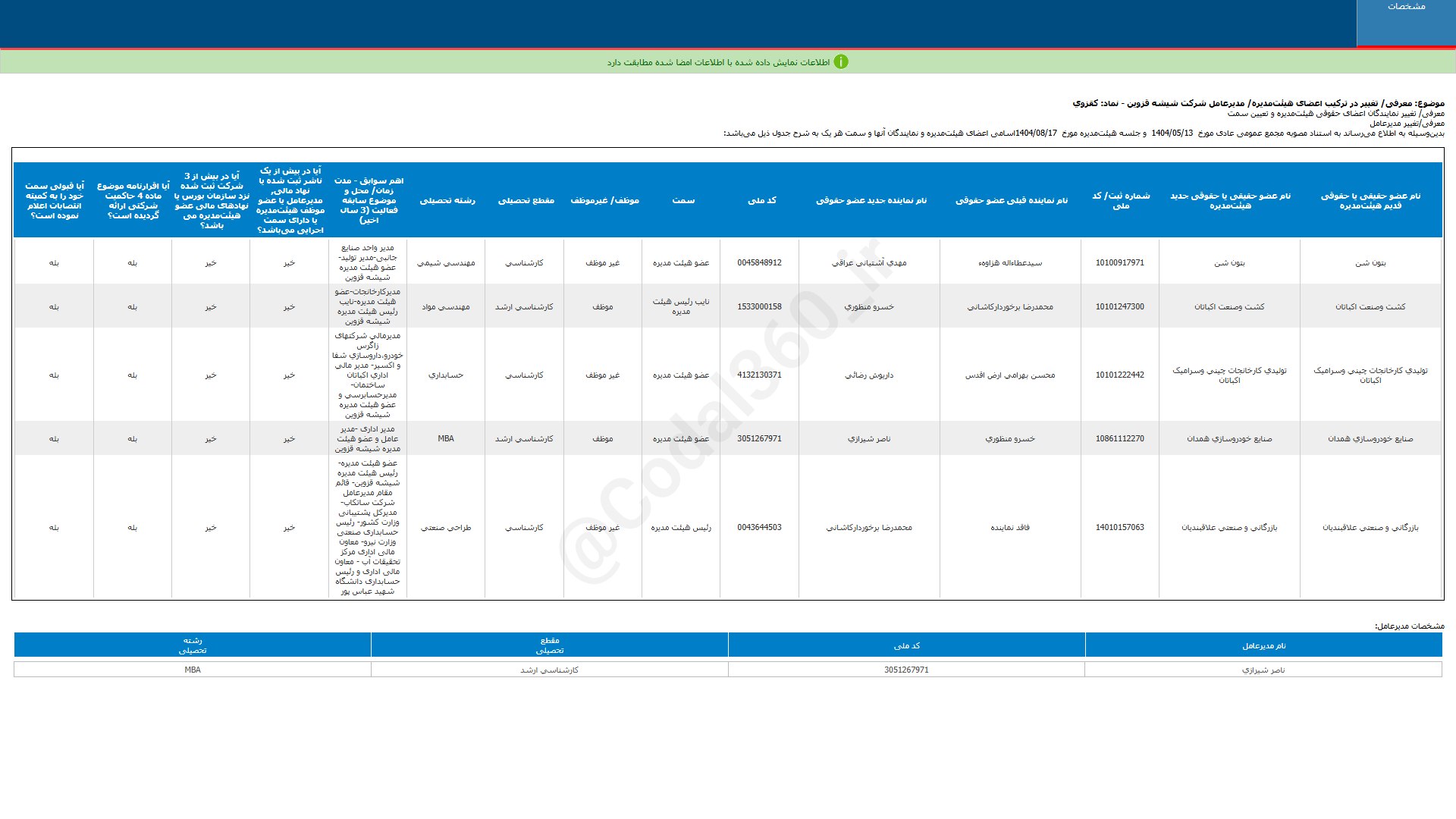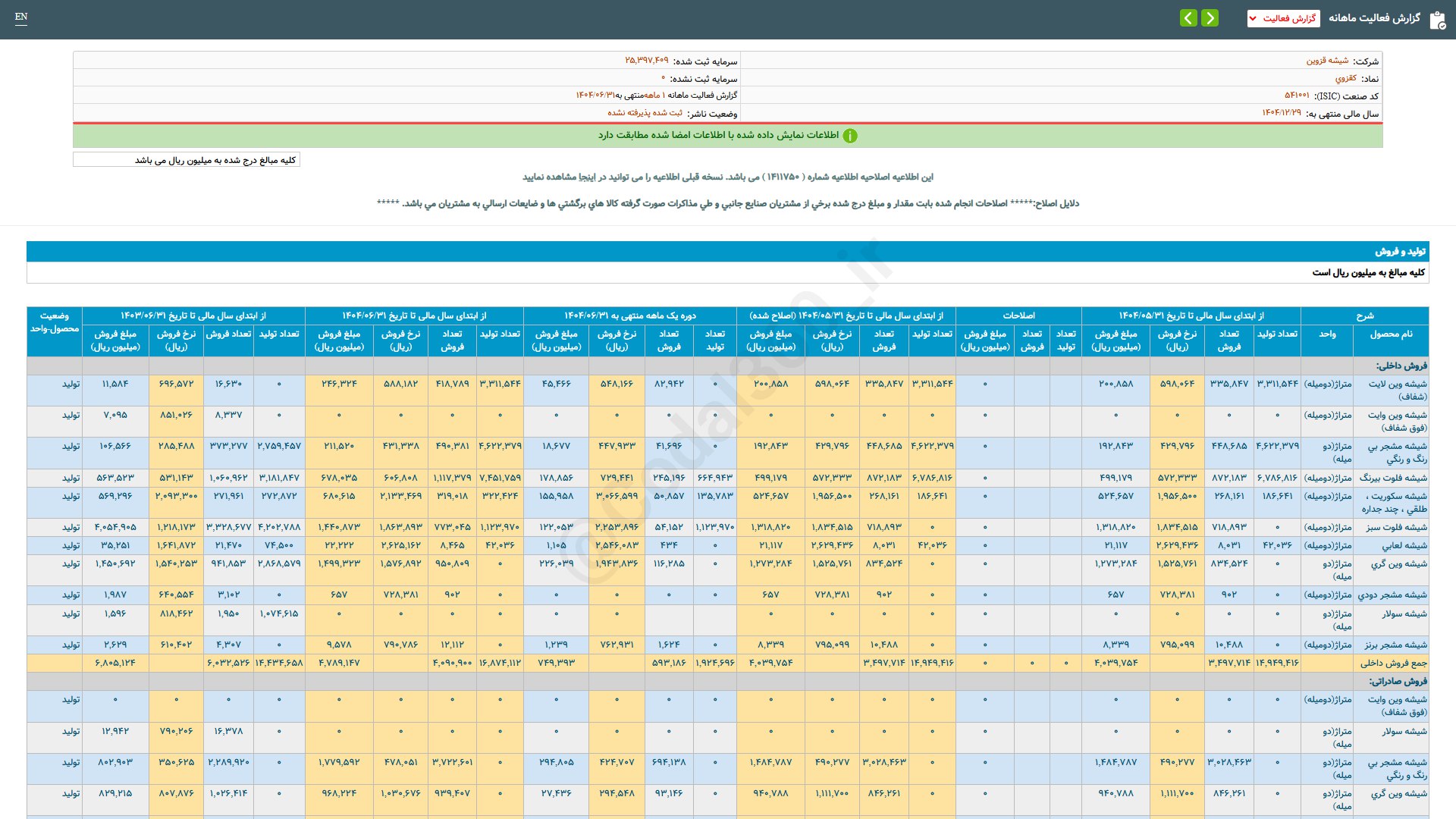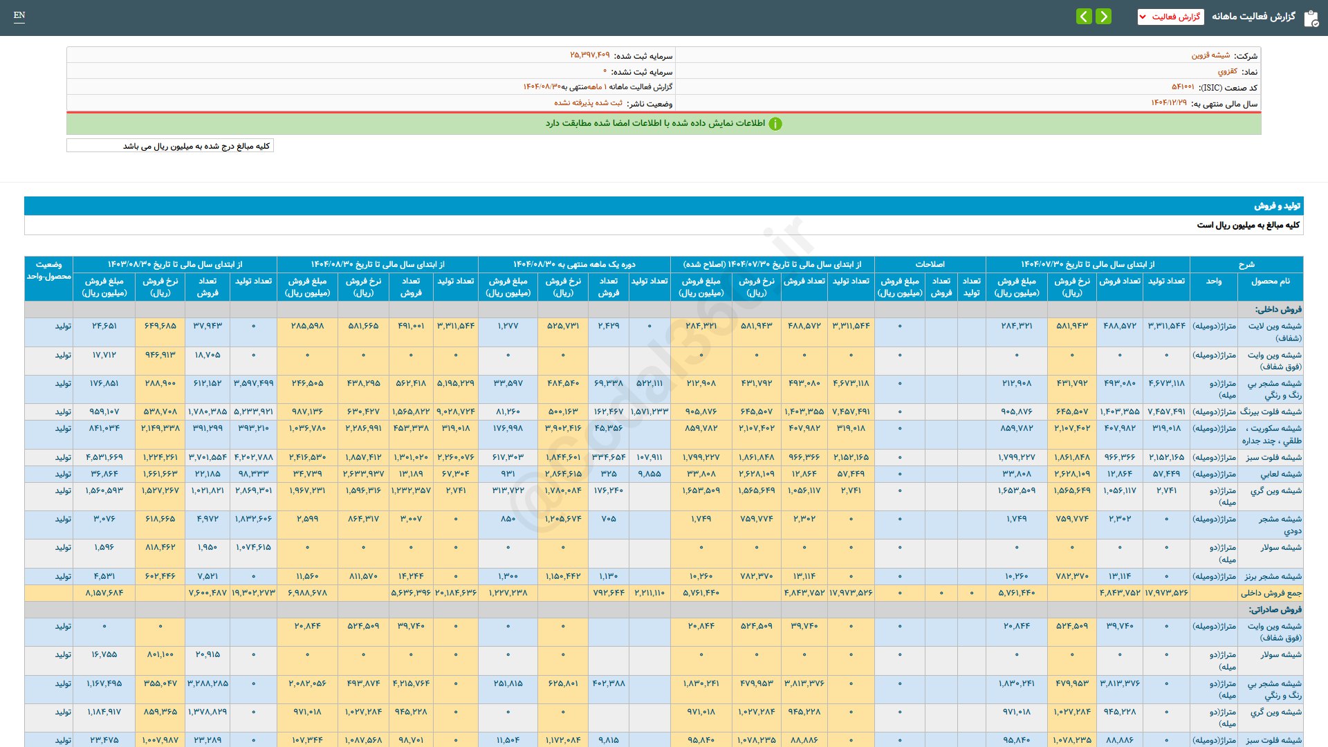 تحلیل های (شیشه قزوین / بازار پایه زرد فرابورس)
