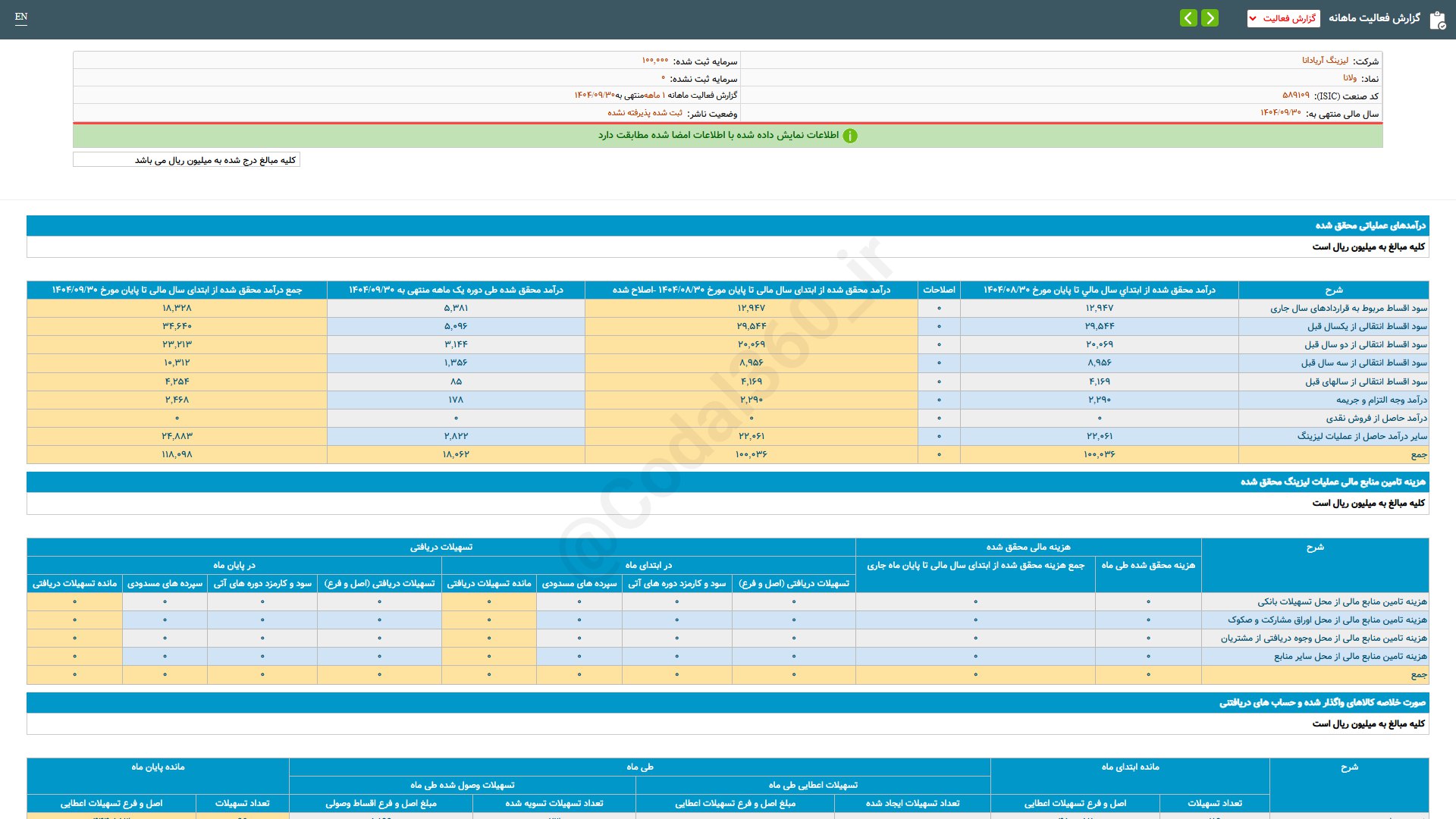 تحلیل های (شرکت لیزینگ آریا دانا / بازار پایه زرد فرابورس)