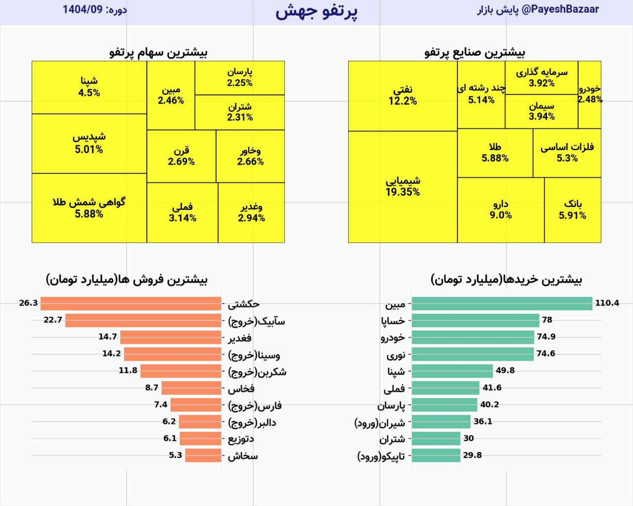 بیشترین درصد سهم ها در پرتفوی جهش به ترتیب زیر هست...